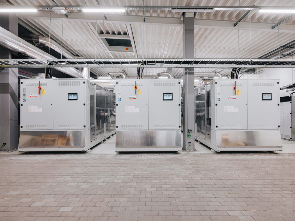 Trane water chillers (3,000 kW) for servicing district cooling in Pärnu city. To achieve optimal efficiency, the waste heat generated by the…